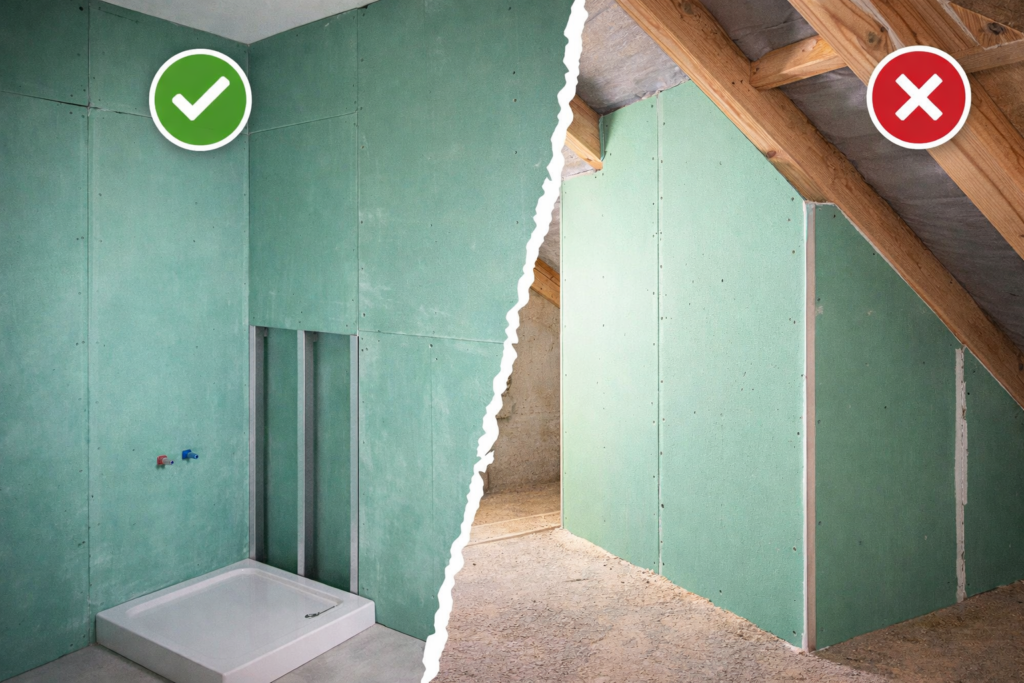 - stabilizacja na powierzchniach pionowych – prawidłowe mocowanie wełny mineralnej do ściany wymaga zastosowania dedykowanych łączników mechanicznych lub profili, które zapobiegają przesuwaniu się ciężkich płyt. Jest to szczególnie istotne w przypadku fasad wentylowanych oraz ścian działowych o dużej wysokości;